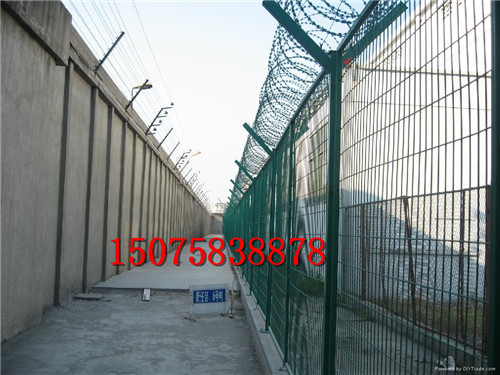隔離網按用途分類,分為:鐵路防護柵欄、監獄隔離網、保稅區隔離網、水庫隔離網、車間隔離網、倉庫隔離網、小區隔離網、機場隔離網、花園隔離網、港口隔離網、鐵路隔離網、公路隔離網、刺繩刺網隔離網、開發區隔離網、市場隔離網、工廠隔離網、鐵藝隔離網等;