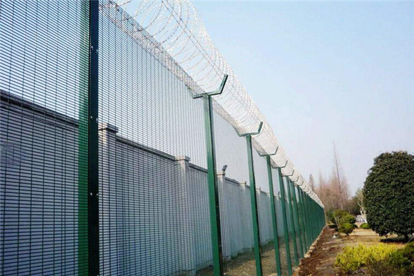 358監獄密紋防攀爬網采用358密紋網制作,因此又稱為358護欄,358防爬網,是目前護欄防護中非常受歡迎的一種護欄類型,因其孔小,能很大程度上防止人或工具攀爬。主要應用于軍事、機場、安全部隊、監獄、輕軌、城際列車等的重要隔離措施。